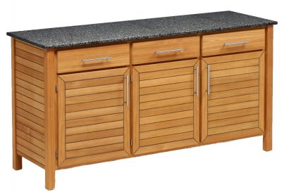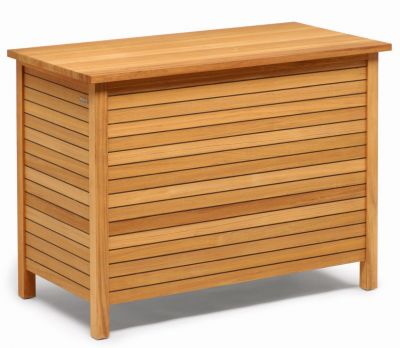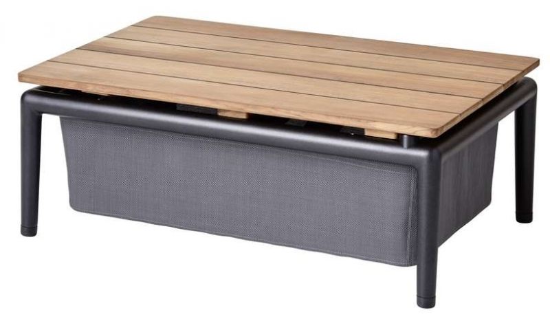 Conic Outdoor Box Tisch von Cane-Line: Gartentisch mit Teakholzplatte und grauem Stauraum.