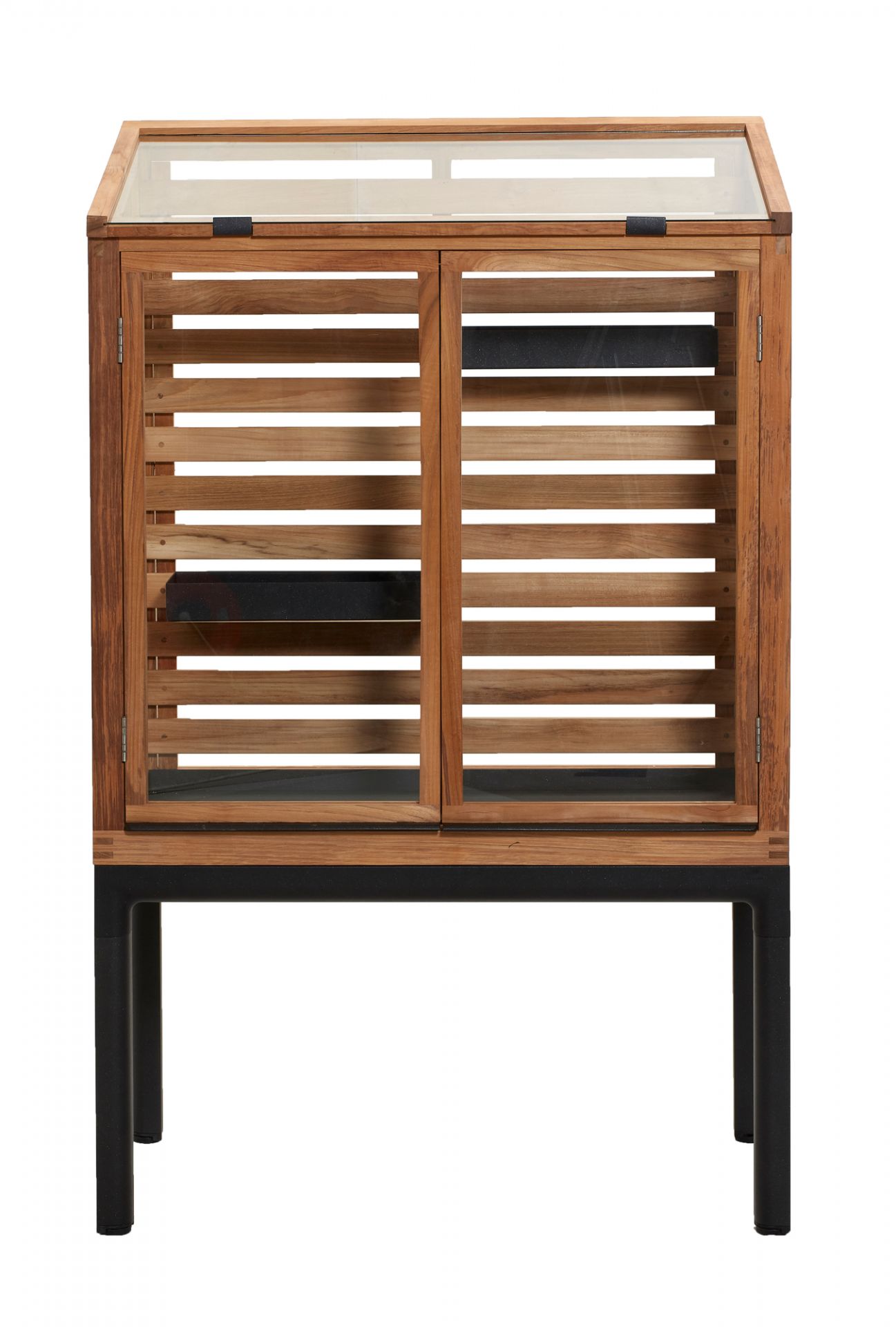 Drop Outdoor Gewächshaus von Cane-Line: Holz-Gewächshaus mit Glasdach und schwarzen Füßen für den Garten.