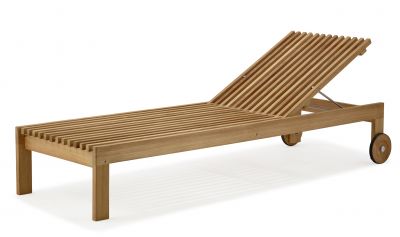 Amaze Sonnenliege von Cane-Line aus Teakholz mit verstellbarer Rückenlehne und Rädern.