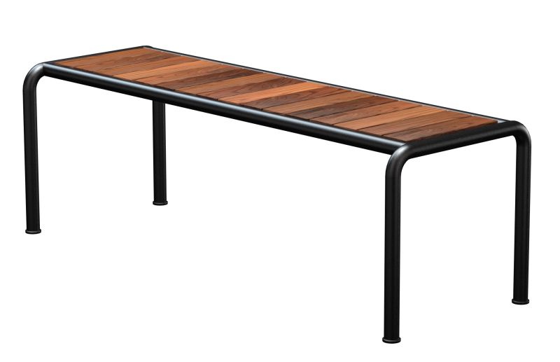 BB 12 Clamp Bank von Janua: Outdoor Akazienholz Bank, gebürstet und geölt, mit schwarzem Gestell.