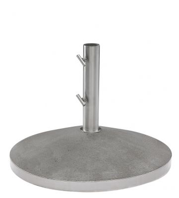 Capri Sonnenschirmfuß von Skagerak: Runder, grauer Betonsockel mit Edelstahlrohr für Sonnenschirme.