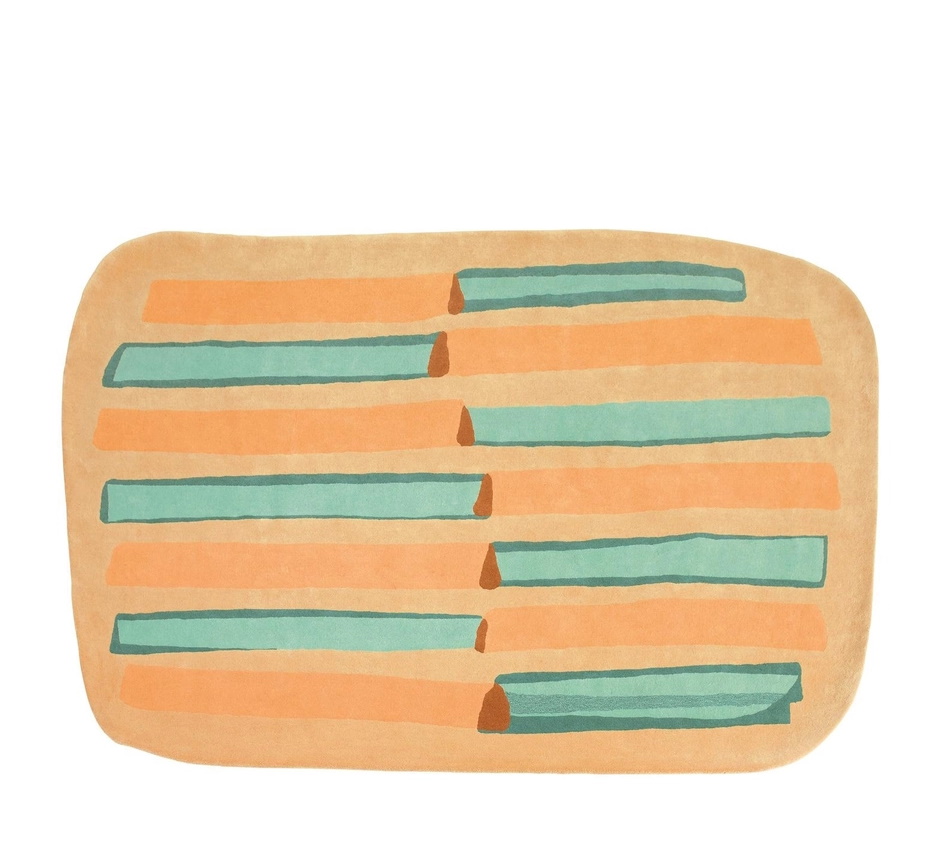 Parays besteht aus handgetufteter und von Hand geschnittener Himalaya -Wolle mit Farben aus dem Reich der Pflanzen und Mineralien. Der Teppich ist 300 cm breit und 200 cm tief, so wie 1,5 cm hoch.