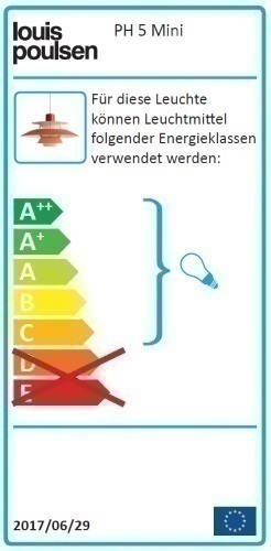 Energieeffizenzklasse Leuchte Geeignet für Leuchtmittel der Energieklassen A++, A+, A, B, C.