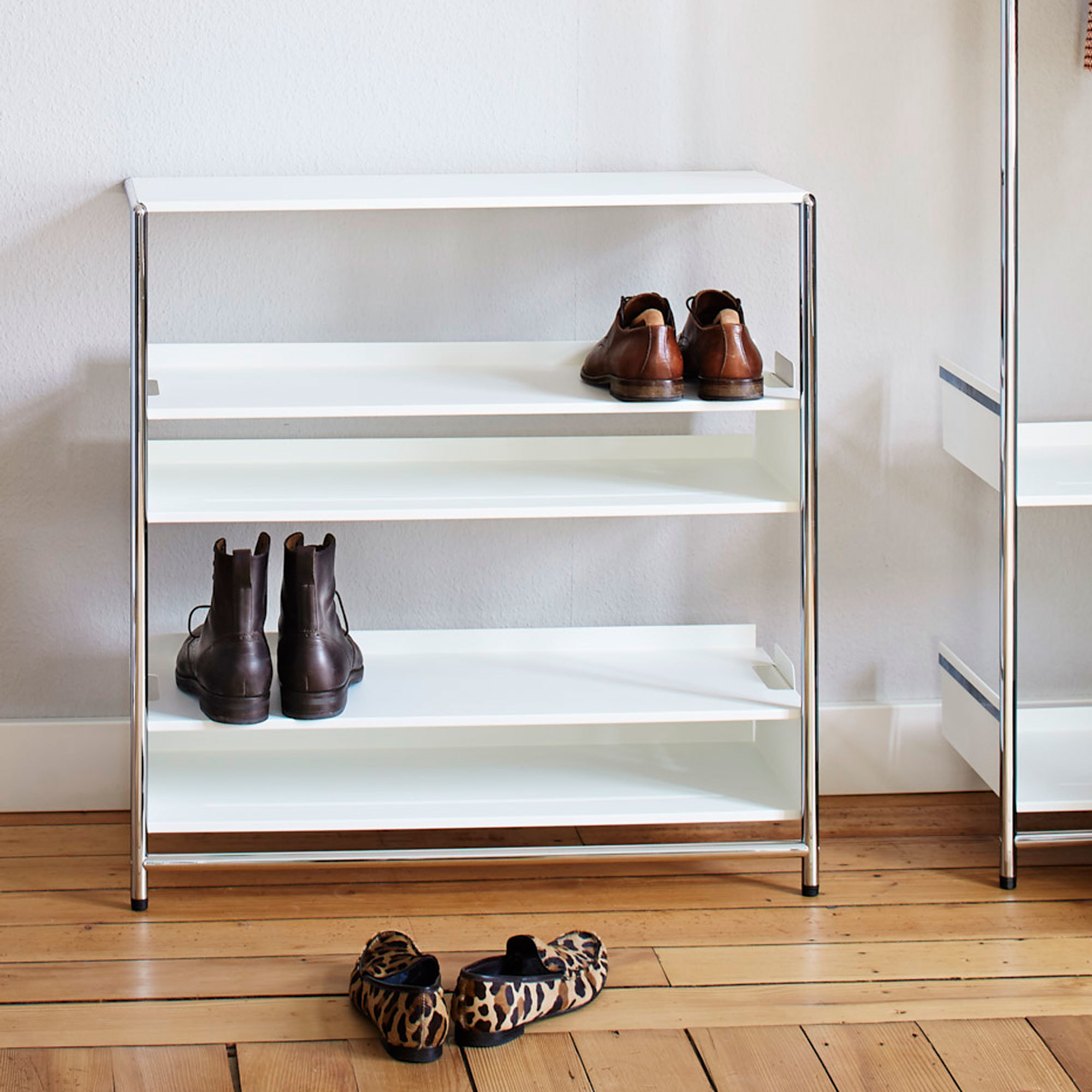 Und das ist noch nicht alles: Für Ablage- oder Dekorationszwecke können Sie wahlweise eine obere Abdeckplatte dazu bestellen. Wenn Sie das Pool 82 als Schuhregal nutzen möchten, erhalten Sie bei uns zudem noch Spezialtablare im 2er-Set. Alle Erweiterungen sind in den passenden Farbvarianten erhältlich.