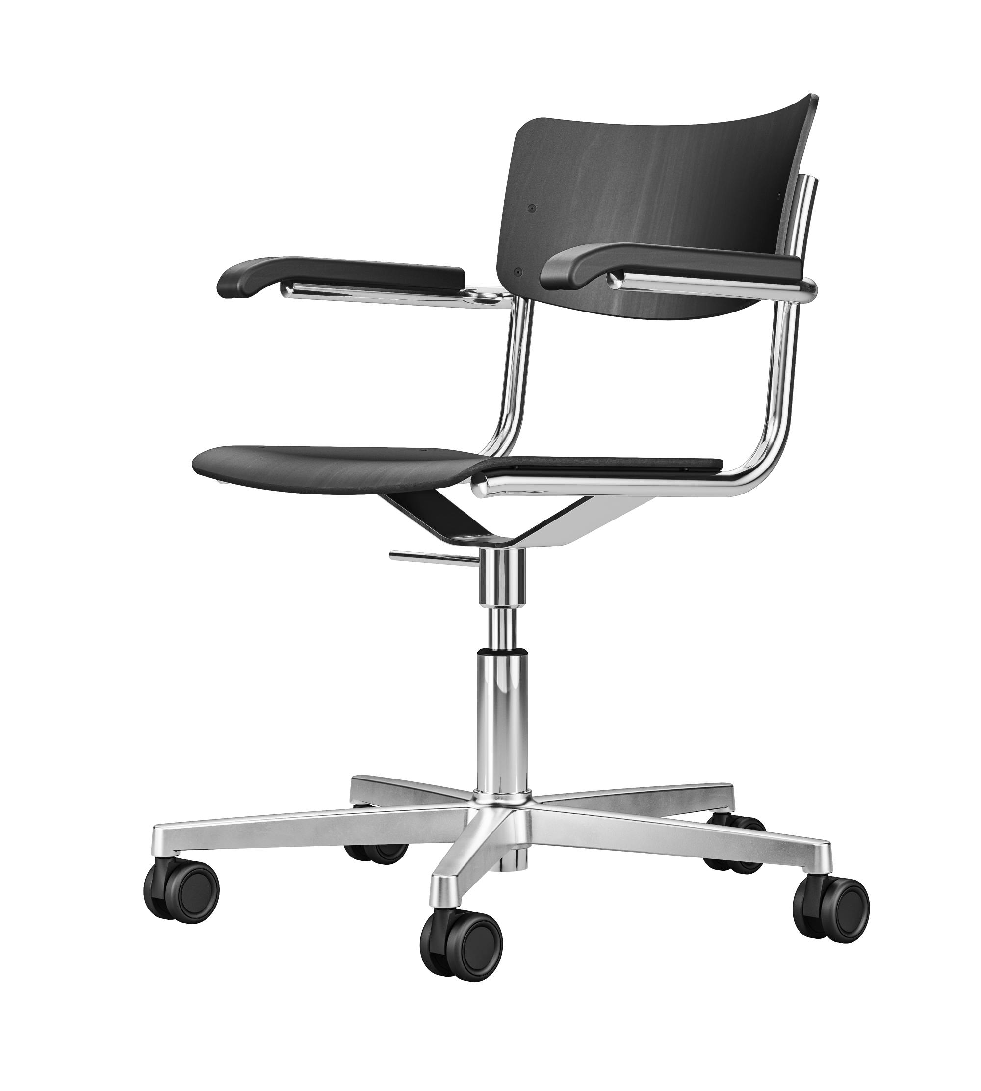 Ein Klassiker kommt in Bewegung – die Arbeitswelt unterliegt einem stetigen Wandel. Arbeitnehmer wechseln zwischen Home-Office, Arbeitsplatz und Arbeit unterwegs in Zug und Flugzeug hin und her. Und auch Möbelklassiker müssen flexibler werden. Thonet hat sich das zu Herzen genommen und einer weiteren Ikone des klassischen Möbeldesigns Räder verpasst.