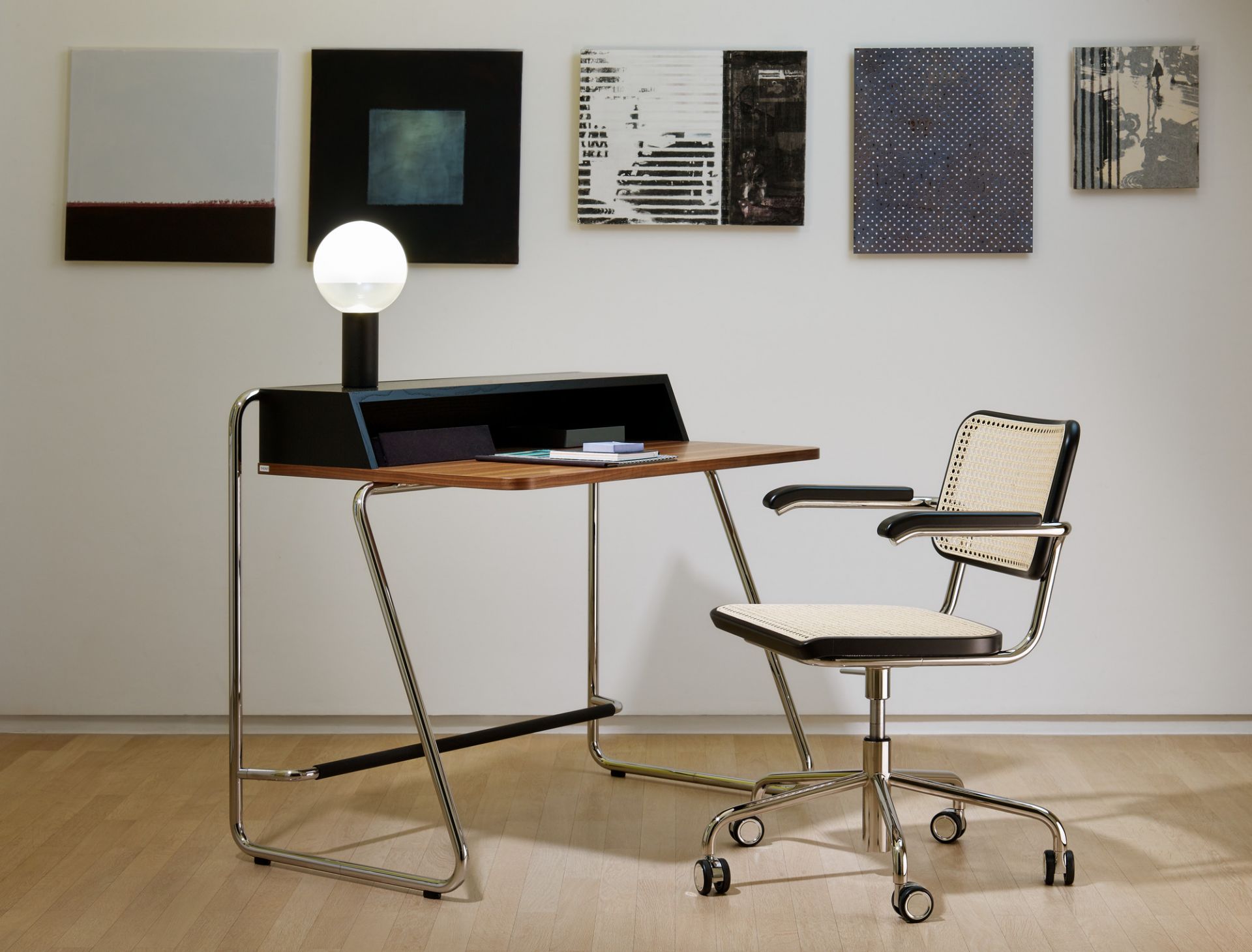Der S 64 von Marcel Breuer ist nun in der Atelierversion verfügbar und damit mobil als Drehstuhl mit einem Zentralfuß auf Rollen unterwegs. Der Schweizer Designer Christophe Marchand hat diese Neugestaltung eines Designklassikers begleitet und sich mit viel Sensibilität und Respekt vor der originalen Gestaltungsidee dieser Aufgabe gewidmet.