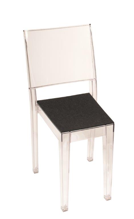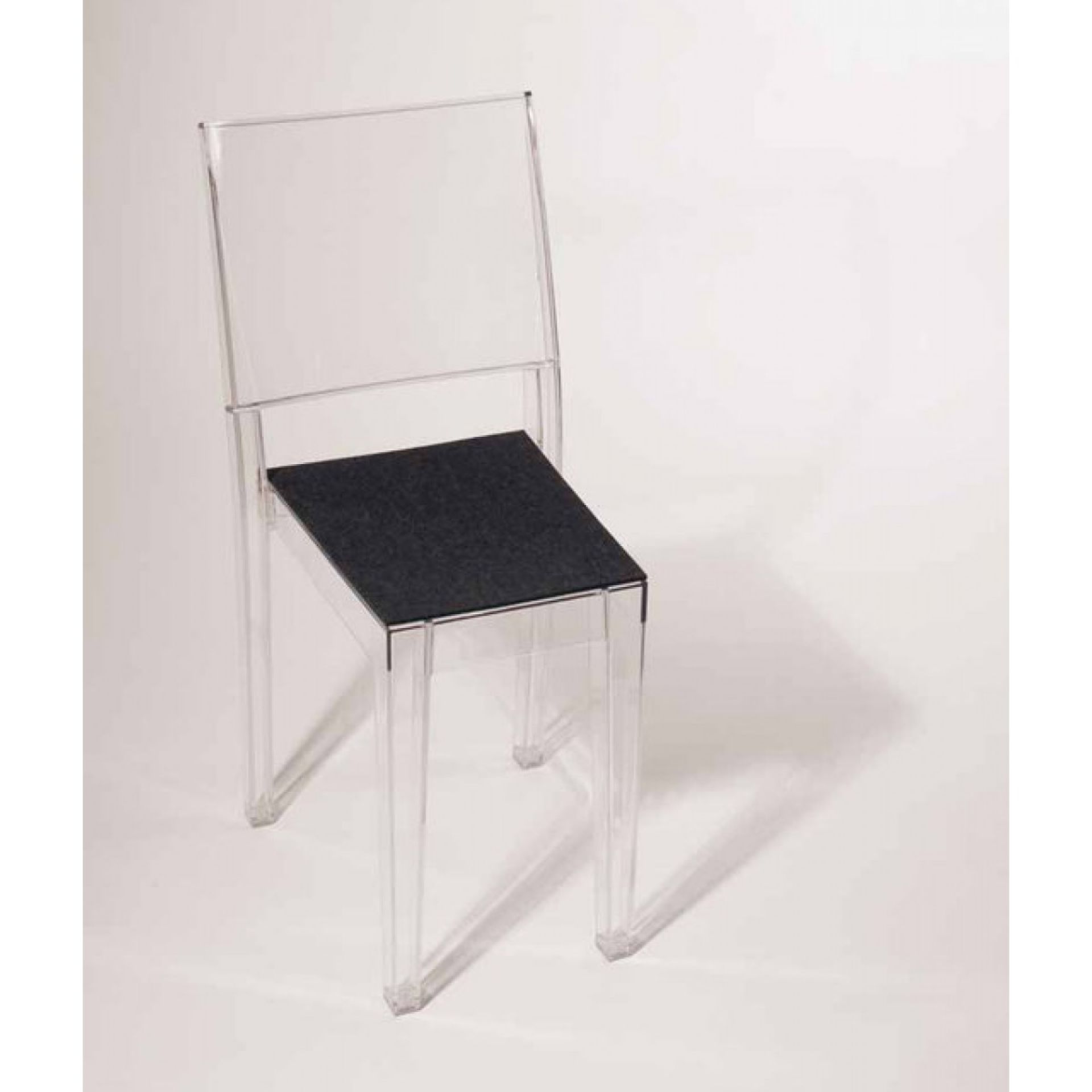 Maßangefertigtes Filzkissen für den Stuhlklassiker La Marie von Philippe Starck. Sitzauflage mit Anti-Rutsch-Beschichtung auf la Marie von P. Starck.Material: 5mm Wollfilz oder 2 x 3mm Wollfilz mit 10 mm Schaumstoffkern.