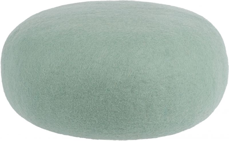 Nahaufnahme: Mintgrüner Filz Pouf Hocker von myfelt, bequeme Sitzgelegenheit und stilvolles Wohnaccessoire.