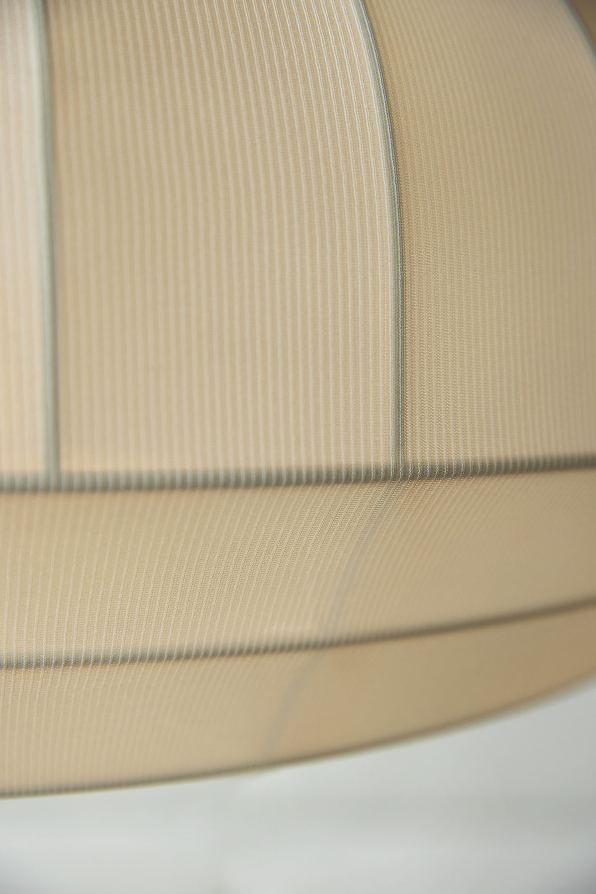 Der Schirm besteht aus gestricktem Polyestergewebe, welches über einen weißen Metallrahmen gespannt wird. Das Kabel ist in einer Seidenschnur verborgen und sorgt für ein sauberes Aussehen.