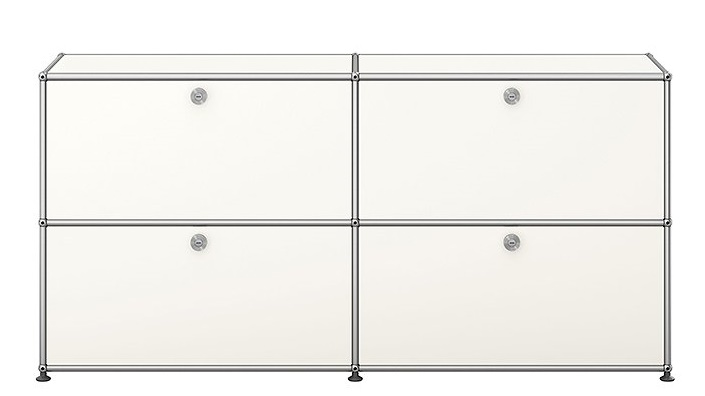 Das USM Sideboard besitzt die folgenden Maße: 152,3 x 37,3 x 74 cm (B/T/H). Die vier Klapptüren lassen sich nach unten öffnen und beherbergen in ihrem Inneren alles, was im alltäglichen Leben so anfällt. Den oberen Bereich nutzen Sie am besten als zusätzliche Ablagefläche, zum Beispiel für die schönen Dinge des Lebens wie Ihre letzten Urlaubsfotos oder Ihre Miniatursammlung.