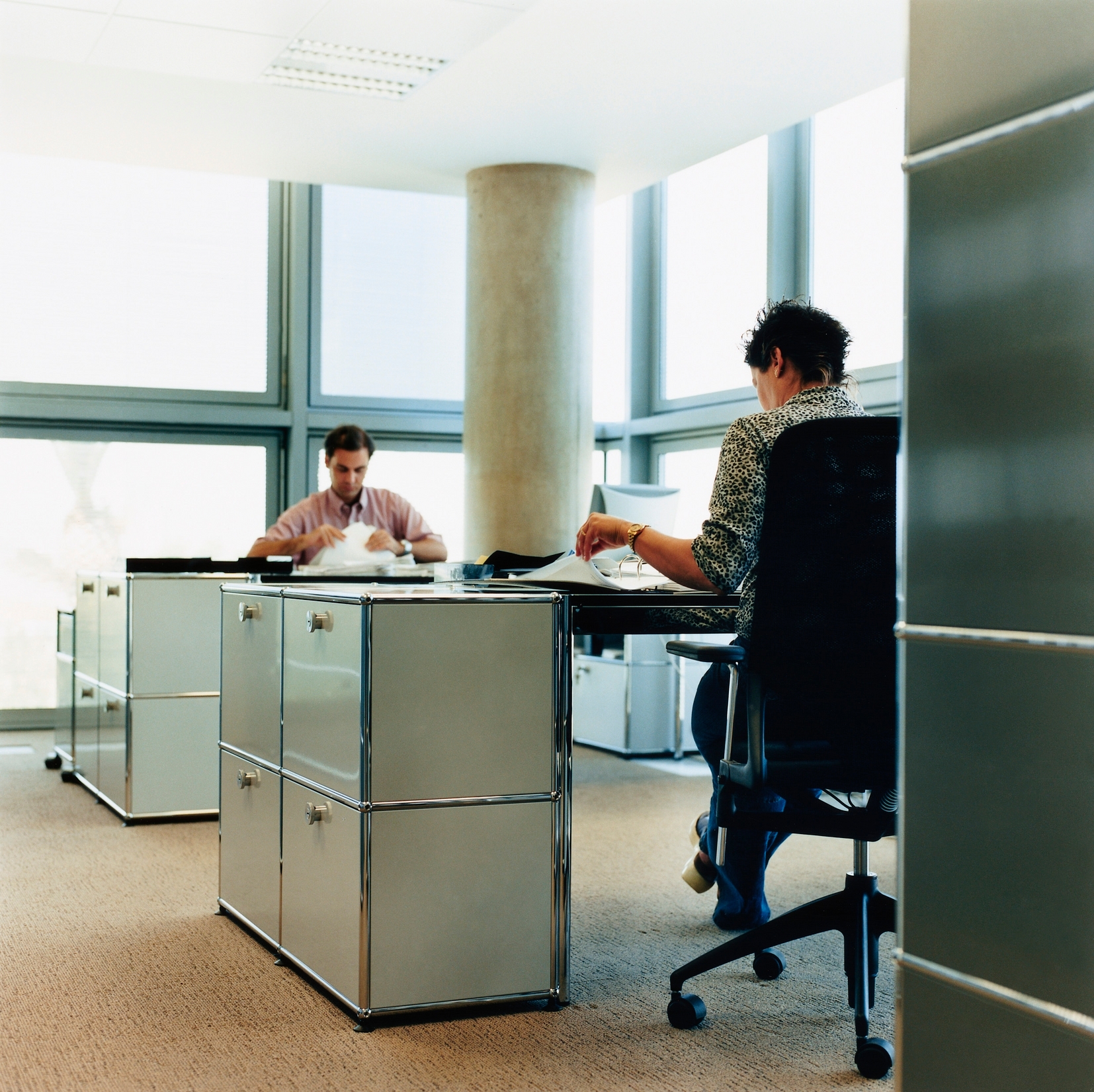 Form follows function in Reinform: Das ist das Motto von USM Haller. Begründet wurde der Erfolg des schweizerischen Unternehmens durch eine unscheinbare, verchromte Kugel. Doch daraus ließ sich in Verbindung mit Stahlrohren und Verkleidungselementen die unterschiedlichsten Designmöbel schaffen, in einer großen Farbauswahl und einer herausragenden Qualität, welche die meisten Mitbewerber schnell in den Schatten stellt.