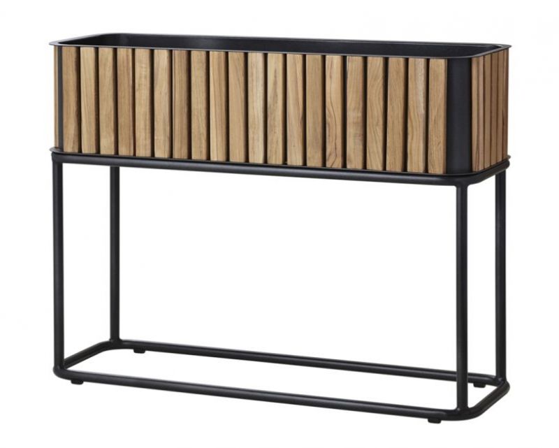 Rechteckiger Combine Pflanzengefäß von Cane-Line mit Holzverkleidung und schwarzem Metallgestell für den Außenbereich.