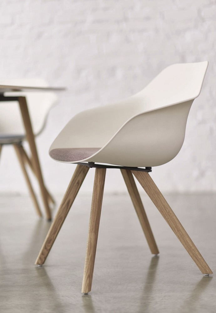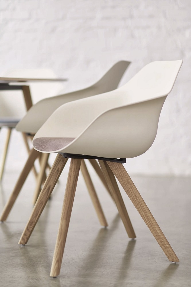 Die Namensgebung ist Programm – Yonda leitet sich von „Beyond“ ab, denn Wilkhahn sieht diese neue Stuhlserie als „darüber hinaus“ an. Die innovativen Schalenstühle wurden vom Designbüro Neunzig°design auf der Basis der bekannten geräumigen Schalenstühle von Georg Lowald aus den 1950er Jahren entwickelt. So wird Yonda Teil einer modernen, komfortablen und flexiblen Arbeitswelt. Durch ihren wohnlichen Charakter können die Stühle aber auch sehr gut in Wohnräumen eingesetzt werden, ob im Home-Office oder am Esstisch. Auch das Material passt zum Namen, denn die Schalen der Serie werden aus BioComposit gefertigt.